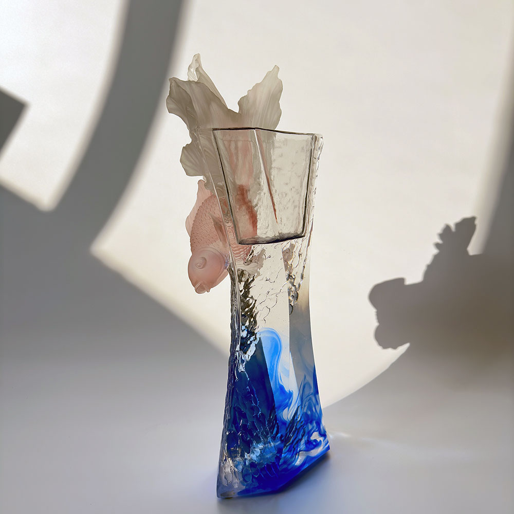 The glass artworks have gradually evolved from traditional craft gifts to encompass decorative furnishings, Buddhist culture, crystal tableware, and fashionable jewelry. The company's production base is located in the beautiful and prosperous water town of Jinxi in Kunshan, Jiangsu Province. We are Crystal glass vase for living room floral arrangements; crystal glass art vase; home décor; table centrepiece; ‘Ode to Water’ suppliers in China, it features a research and development space for glass production that spans 35,000 square meters. The facility is equipped with independent design capabilities, clay modeling techniques, and technological research and development resources, demonstrating mature skills in both product development and manufacturing processes.
